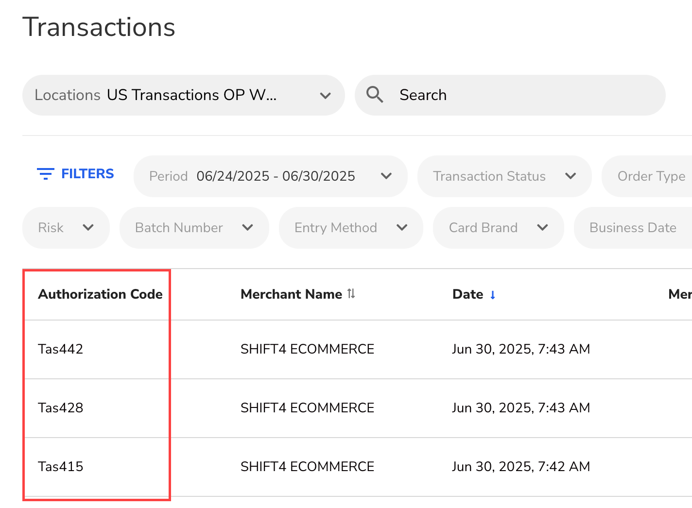 We’ve added an Authorization Code column to make it easier to track and reference specific transactions.