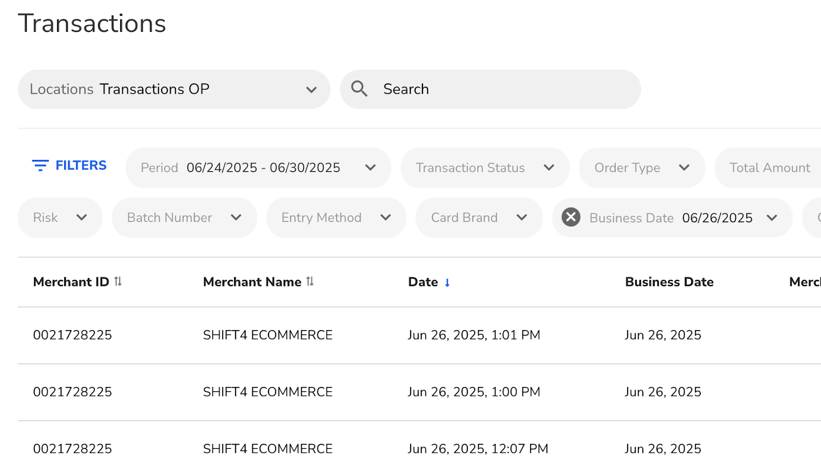 Resolved an issue where the Business Date filter in the transaction dropdown did not reflect the selected date correctly.